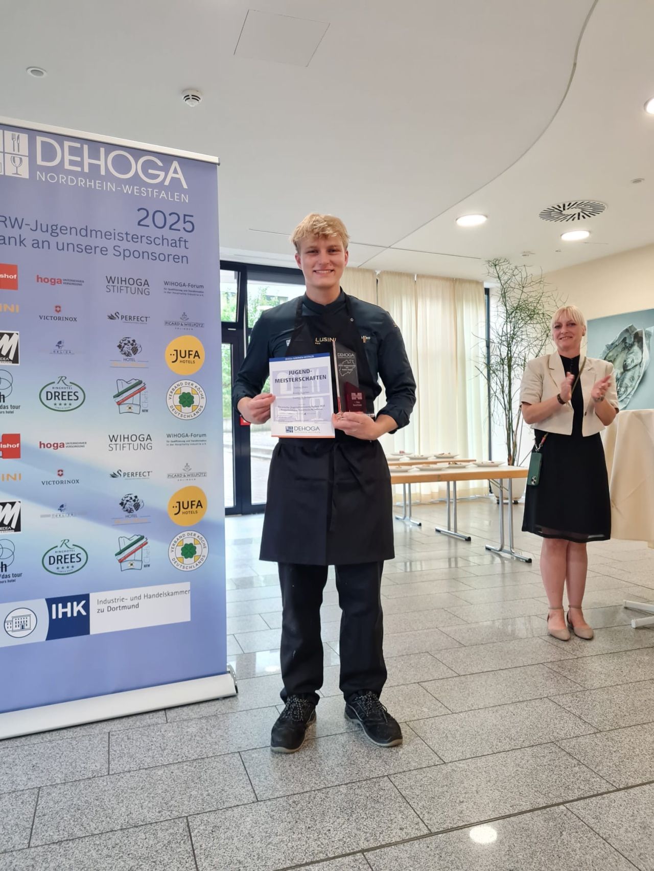 Mit diesem Sieg trägt er nun den Titel „Bester Jungkoch NRWs“ und qualifiziert sich für den Bundeswettbewerb im Herbst, bei dem er um den Titel des besten Jungkochs Deutschlands antreten wird.